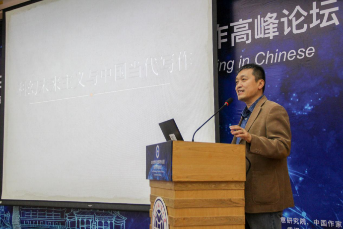 最后是吴岩教授关于《科幻未来主义与当代写作》的演讲。他认为想象力与科技写作都是可以习得的。他表示:“我们要向前看。”并强调:“未来已经到来,而想象应该是超越科技的灵光。”他认为正是因为想象的天马行空,才赋予了科幻乃至科技以创造力。 :“所以,作为一个科幻未来主义者,应要直面未来,要有开放包容的胸怀,乐于接纳未知的事物。唯有如此才能写出符合时代潮流的作品。”谈到科技与写作的关系时,他如是说。