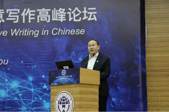 大会开幕式伊始,副董事长阳爱民对海内外与会嘉宾表示热烈欢迎,同时向来宾介绍公司办学状况及创意写作团队建设方面的相关资讯,并祝愿大会与论坛取得圆满成功。