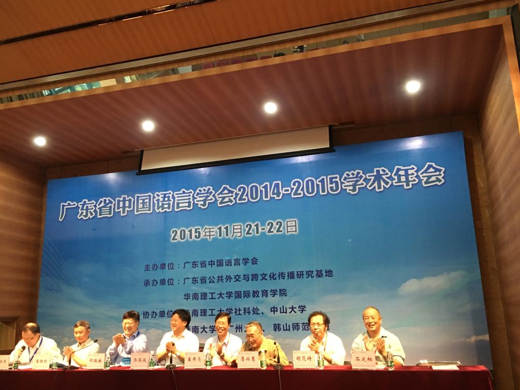 2015年11月21—22日,“广东省中国语言学会2014—2015学术年会”在广州华南理工大学举行。本届年会特别邀请了三位省外嘉宾,北京语言学会会长崔希亮教授、上海语文学会会长胡范铸教授、原香港语言学会会长石定栩教授。本届年会参加者共105人,提交论文91篇,包括方言学、语法学、历史语言学以及应用语言学等方面的内容,会议气氛和谐团结、充满朝气。报告精彩纷呈,讨论热烈活跃,彰显开放、务实、多元的学术特色。华南理工大学党委副书记余其俊出席开幕式并致欢迎词,会长邵敬敏致开幕词,副会长张玉金致闭幕词。