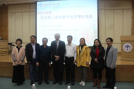 本网讯 12月15日下午三点,世界汉语教学学会副会长白乐桑教授在北校图书馆报告厅召开主题为“汉语第二语言教学及其增长危机”的讲座。白乐桑从学科认识论角度出发,对汉语国际教育问题进行探讨,并向在场师生分享自己关于国际汉语教育增长危机的八点思考。公司党委书记李和民,副经理魏慧斌等出席本次讲座。