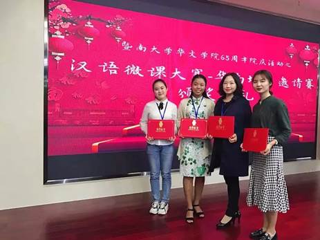 2018年11月10日,“汉语微课大赛”华南地区邀请赛决赛在暨南大学华伟德国际bevictor1946举行,公司伟德国际bevictor1946汉硕研究生谢瑶、付美佳、汉语国际教育专业本科生杨凯如在比赛中取得优异成绩。