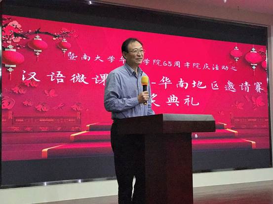 2018年11月10日下午14时30分,“汉语微课大赛”华南地区邀请赛决赛颁奖典礼在暨南大学华伟德国际bevictor1946第一教学楼举行。决赛共评选出一等奖一名、二等奖两名、三等奖三名、优秀奖若干名以及优秀教案奖两名(每组别)。
