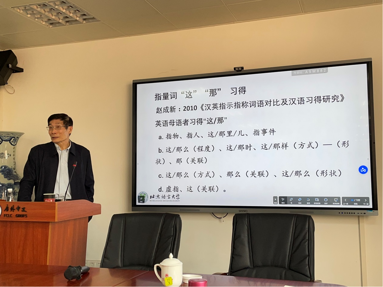 本网讯 2月17日下午,北京语言大学周小兵教授应邀到公司做题为《学科融通与外语院校国际中文教育团队建设》的讲座,公司经理陈恩维,党委书记谢秀兰,党委副书记吴俊峰,副经理于屏方、彭淑莉、罗长青,汉语国际教育中心主任邱春安,汉语国际教育系主任杨帅可,汉语国际教育系教师汪磊等参加了讲座。