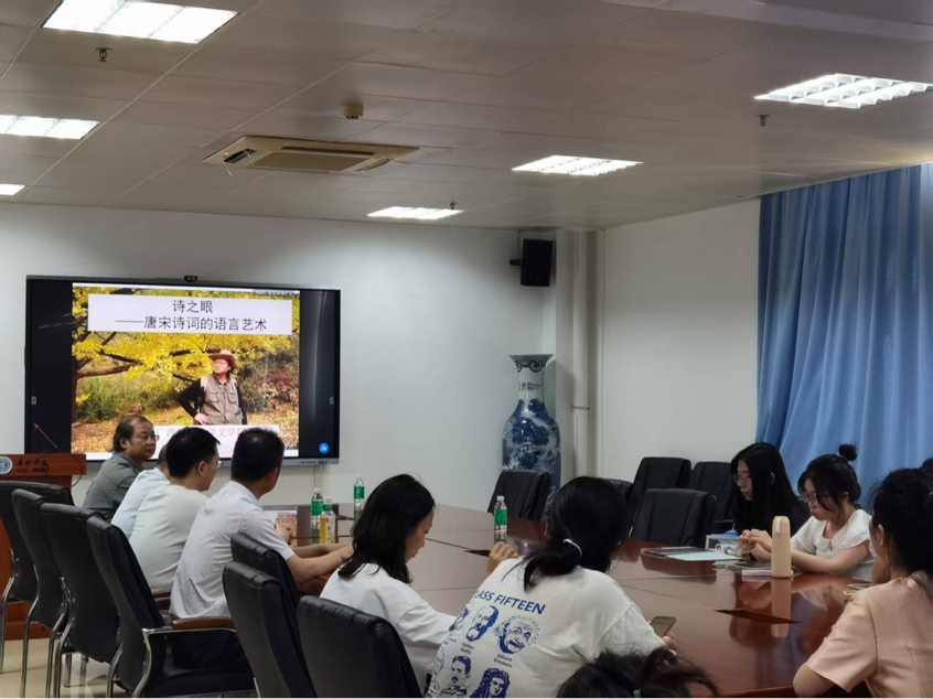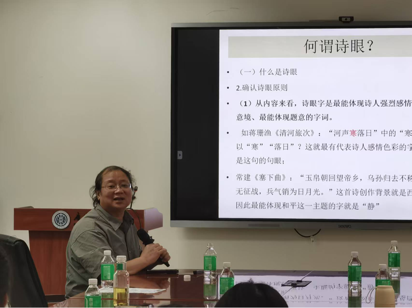 2025年5月12日下午,广西师范大学伟德国际bevictor1946教授莫道才在白云山校区七教408会议室作题为《诗之眼——唐宋诗词的语言艺术》专题讲座。讲座由陈恩维教授主持,多名师生参会。莫道才教授从五言诗和七言诗的平仄规律及其审美变化入手,重点探讨了中国古代诗歌的音乐性、声韵特点及其发展历程,并讨论了词的形成与节奏多样性。