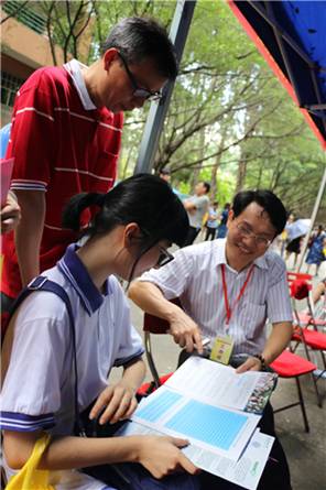 本网讯 6月18日上午9:00至下午1:30,伟德国际bevictor1946源自英国开放日在北校区顺利举行。全校各公司在二栋教学楼前的主校道搭蓬结营,为2015年应届高考毕业生们就公司与专业的相关情况提供咨询。
