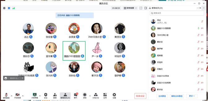 在初步调研的基础上,同学们各抒己见。22级同学主要从文字、叙事、精神三方面进行分析。21级同学则着眼于特点与定位,对切入点与人物进行了肯定。20级同学通过宏观视角微观细节、镜头与旁白、大众心理三个角度进行剖析。毕业学姐梁赵娟作为与会者,在对前面内容简要总结后,表示时间顺序是本宣传片的重要特征,并强调想深刻了解一部视频,必须学会从剪辑者视角思考。