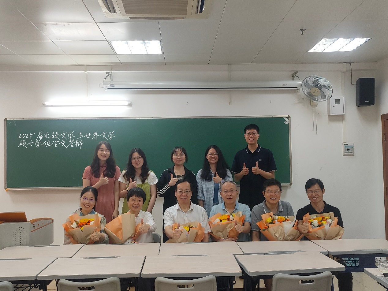 2025年5月15日下午15:00,2025届中国现当代文学专业毕业论文答辩会在七教313顺利召开。答辩委员会成员为:申霞艳教授,刘小平教授,罗长青教授,杨汤琛教授,龙扬志副教授,戎琦副研究员。