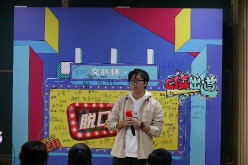 暖场视频结束后,伟德国际bevictor1946团委书记陈泽帆老师以一段简短幽默的开场白拉开了本次文学脱口秀大赛的序幕。
