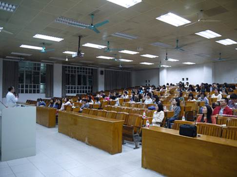 公司面向大一员工举办的就业指导课在二教217开课。公司邀请到了中国老员工职业发展网指导老师彭敏、赵奇予给大家传授有关实习以及职业形象的知识。