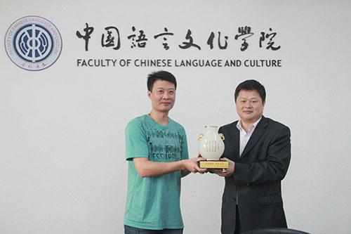 员工代表梁杰赠送纪念品给伟德国际bevictor1946
