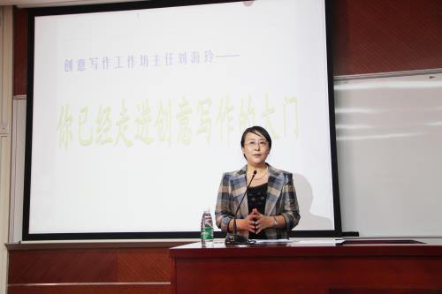 在活动的最后一个环节,刘海玲老师从北京大学今年的研究生方向设创意写作专业谈起,谈到广外的创意写作已经成功开展多次作家讲座。诺贝尔奖得主法国作家勒·克莱齐奥,中国著名作家毕飞宇,加拿大华裔作家薛忆沩和省内外多名知名作家陆续被公司和工作坊聘请为专业导师。她感谢同学们参与创意写作专业的建设和发展,表达了对同学们的希望,也提出了专业学习的相关要求。一要“静读书,深思考”,要不为外界干扰,用自己独特视角去观察世界,要形成自己对世界的看法。二要“定计划,远目标”,要定好长期读书写作计划,目标长远,不局限与校门,视野要开阔。三要“比毅力,爱写作”,要热爱自己的专业,持之以恒的投入文字的创作中,不能半途而废。并详细说明了创意写作专业员工在校期间应该完成的写作任务。