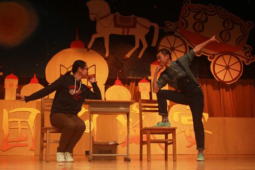 文秘1402班新编的《白雪公主》颠覆传统,男同学扮演的公主、女同学扮演的王子、高个子扮演的小矮人,赢得阵阵喝彩院话剧队带来的《我play》以小提琴和吉他伴奏的合唱清新开场,随后却画风一转,进入了诙谐的“恋爱课堂”,引起全场笑声不断。在文秘1201集舞蹈歌曲话剧一身的《我们要上迎新晚会》之后,文秘1202的话剧《使徒文秘2》更是改编当红粤语剧集《使徒行者》,展现另类的校园卧底话剧,恋爱、卧底、学习的纠缠使主人公最后得出了 “且学且珍惜”的感悟。而压轴舞台剧《奶奶带我飞飞飞》以回忆和现实穿插的方式展现了文秘1302班的热情与团结。