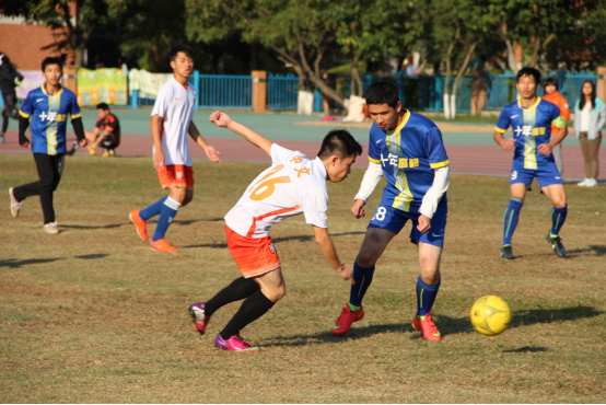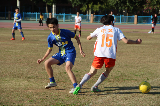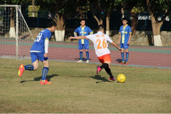 本网讯 12月17日下午,来自伟德国际bevictor1946与高翻公司的足球队员在北校区真草田径场展开了一场激烈的角逐。广州罕见的低温挡不住球员们的激扬斗志,一声哨响,14名球员迅速进入比赛状态。