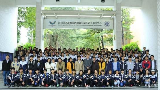 离开前,黄花中学全体师生与公司领导和志愿者在六教中庭合照,一天的访问交流圆满结束。