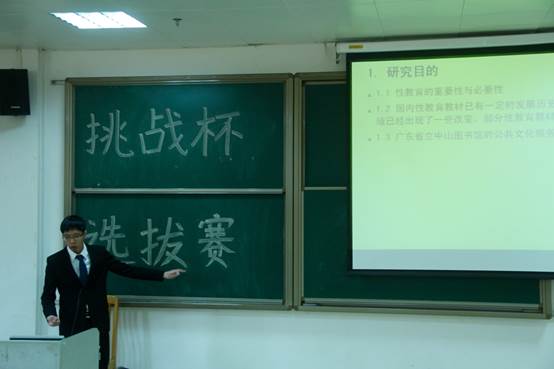 第七个上场的卢梓淇,展示了他在国内性教育教材内容时效性方面的评估。强调性教育的重要性和必要性后,他以广东省立中山图书馆藏书为例,说明了更新性教育教材的重要性。在评估中,他运用文献分析法和内容分析法等调研方法,赢得了陈恩维教授的频频赞赏。