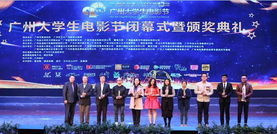 广东省电影家协会主席、珠江电影集团党委书记、董事长蔡伏青,暨南大学副董事长饶敏,广东省电影家协会专职副主席宋枭楠,广东省委宣传部文艺处庄烁,广州市国有经营性文化资产监督管理办公室主任皮健,广州市文化广电新闻出版局副巡视员温朝辉,广州市文化广电新闻出版局财务处处长陈志斌,广州市演出电影有限公司董事长邓翅翔,广州金逸珠江电影院线总经理许斌彪,广州中投文化有限责任公司总经理岑力辉以及暨南大学、广州大学、广东财经大学、中山大学等高校有关单位领导和嘉宾与来自全国各高校的老员工代表济济一堂,参加闭幕式暨颁奖晚会,共同见证这一广东电影界与教育界发起的视听光影盛会。