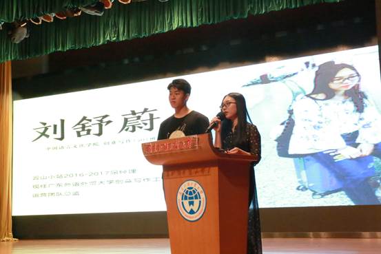 “学霸师姐”向汐与“走四方”的刘舒蔚先后上台演讲。向汐毫无保留地与新生们分享学习经验与时间管理方法。她建议大家在大学里要以更合理、更高效的方式规划学习和生活。刘舒蔚则以自身经历为例,告诉新生们既要坚定初心,又要勇于尝试。她认为,写作是她的初心,也是她的归宿岛。而谈到勇于尝试时她表示:“虽然要重新做什么是很累的,但多一种尝试会让你多一个选择。”