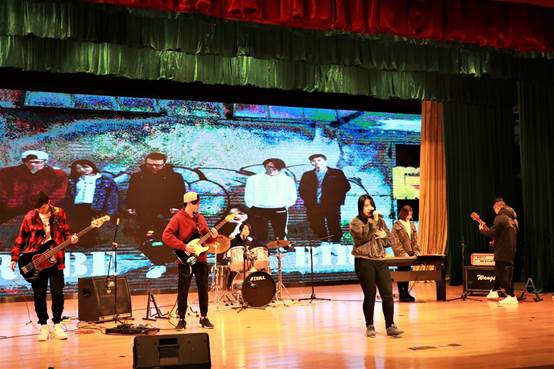 紧接着,汉硕带来的民乐演奏——《春江花月夜》。她们带领观众走入一幅有古筝、舞蹈和书法相伴的中国水墨画。随后校歌队精心准备的歌曲串烧,配上模特队的霸气走秀,全场观众的欢呼和尖叫。