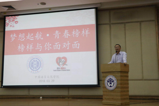 本网讯 3月29日晚,公司于图书馆报告厅举行伟德国际bevictor1946国家奖学金榜样、国家励志奖学金榜样分享会。我院党委副书记李江、校员工处思政科长叶开、公司辅导员杨韬、辅导员朱倩渝出席本次分享会。公司大部分同学参加分享会。罗彬主持本次分享会。李江首先上台致开场辞,他强调榜样力量在同学们人生中的重要性,他说道:“希望同学们学习国奖得主如何学习,如何热心社会实践,学会奉献、责任与担当。”同时他还提到应该大力宣传榜样,形成优良学风。