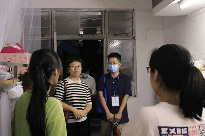 王迪副书记和辅导员陈泽帆老师探访了新生宿舍,了解新生入住情况,并与新生亲切交谈。