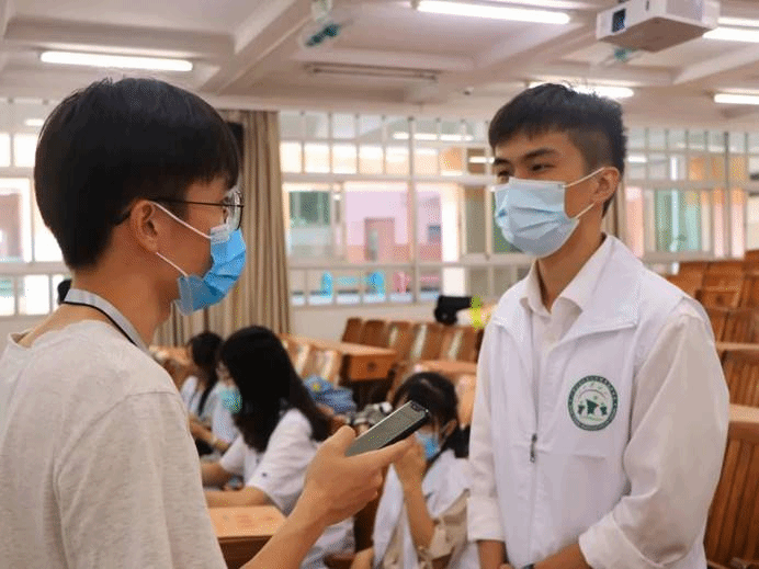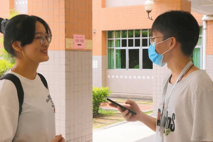 一位女同学告诉我们,她非常喜欢中文专业,很高兴能够成为广外中文大家庭中的一员。同时,她也很喜欢跳舞,希望能够加入舞蹈类社团。当被问及对今天志愿者的印象时,这位同学说,自己刚下车就有学姐们主动帮忙搬行李,这份热情让她十分感动。
