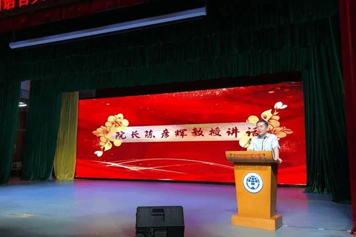 升旗仪式过后, 陈彦辉教授发表讲话。他总结了公司多年取得的优异成绩,并阐述了公司的“中文+外语+实践”的人才培养模式。陈彦辉教授引用“学而时习之,不亦乐乎”、“士不可以不弘毅,任重而道远”等名句劝勉新生们要端正学习态度,珍惜时间,勇担责任,做不负韶华、不负时代的广外人。