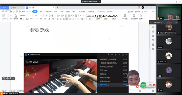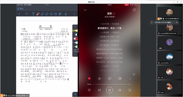 教员通过猜歌游戏的方式,对经典红歌进行鉴赏,并挑选了其中的经典歌曲《国家》来具体教学,让大家一起唱响红歌。