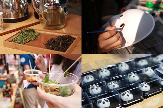 文化节各摊位自成一家,既不脱离节日主题,每一个摊位又是独具特色的川蜀文化小世界。其中,文管1501班“熊了个猫”摊位以蜀地特色动物大熊猫为主题,制作了各式各样非常可爱的熊猫形状食品,大受欢迎。中文1601班“小巷茶馆”摊位,还未靠近却已茶香沁鼻。汉教1501班“蔬熟蜀墅”摊位和中文1602班“欢辣颂”两个美食板块摊位“辣”字当头,前来品尝美食的师生虽被辣得大汗淋漓却仍啧啧称赞。有美食也有艺术,汉教1502班“川蜀颜值”摊位的同学现场手绘脸谱,十分惊艳。除此之外中文1604班“古蜀传说”摊位带来关于蜀地历史的游戏,难倒一大片参加游戏的同学,却也让大家更了解川蜀的过去。