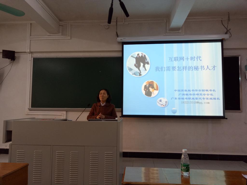 本网讯 1月12日上午,中国高教秘书学会副秘书长、广州秘书学研究会会长杨锋作客北校区并开展了主题为《强化双核 知能合一》的讲座,讲解了“互联网+”时代背景下社会对秘书人才提出的新需求。