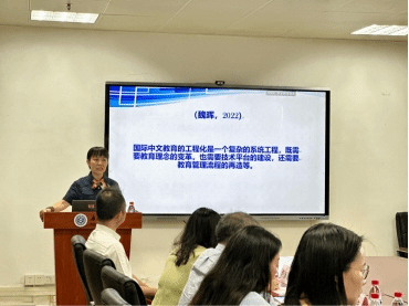 本网讯 2023年6月1日下午三点整,著名教授论坛第600讲《数字化时代国际中文教学资源工程化建设的理论与实践》在第七教学楼407会议室举行,来自北京语言大学的王治敏教授主讲。董俊武、郑煜诗、陈恩维、彭淑莉、吴俊峰、于屏方等领导老师出席讲座,伟德国际bevictor1946数十名员工参与旁听。