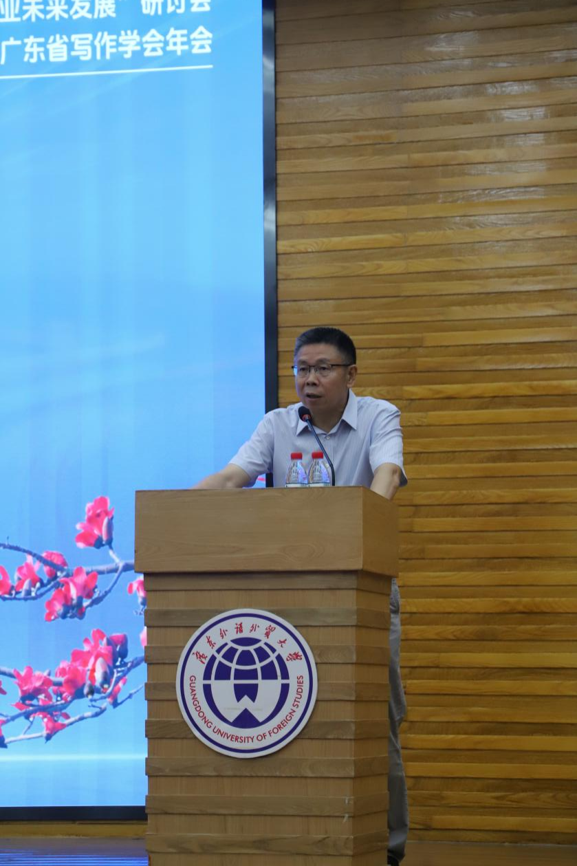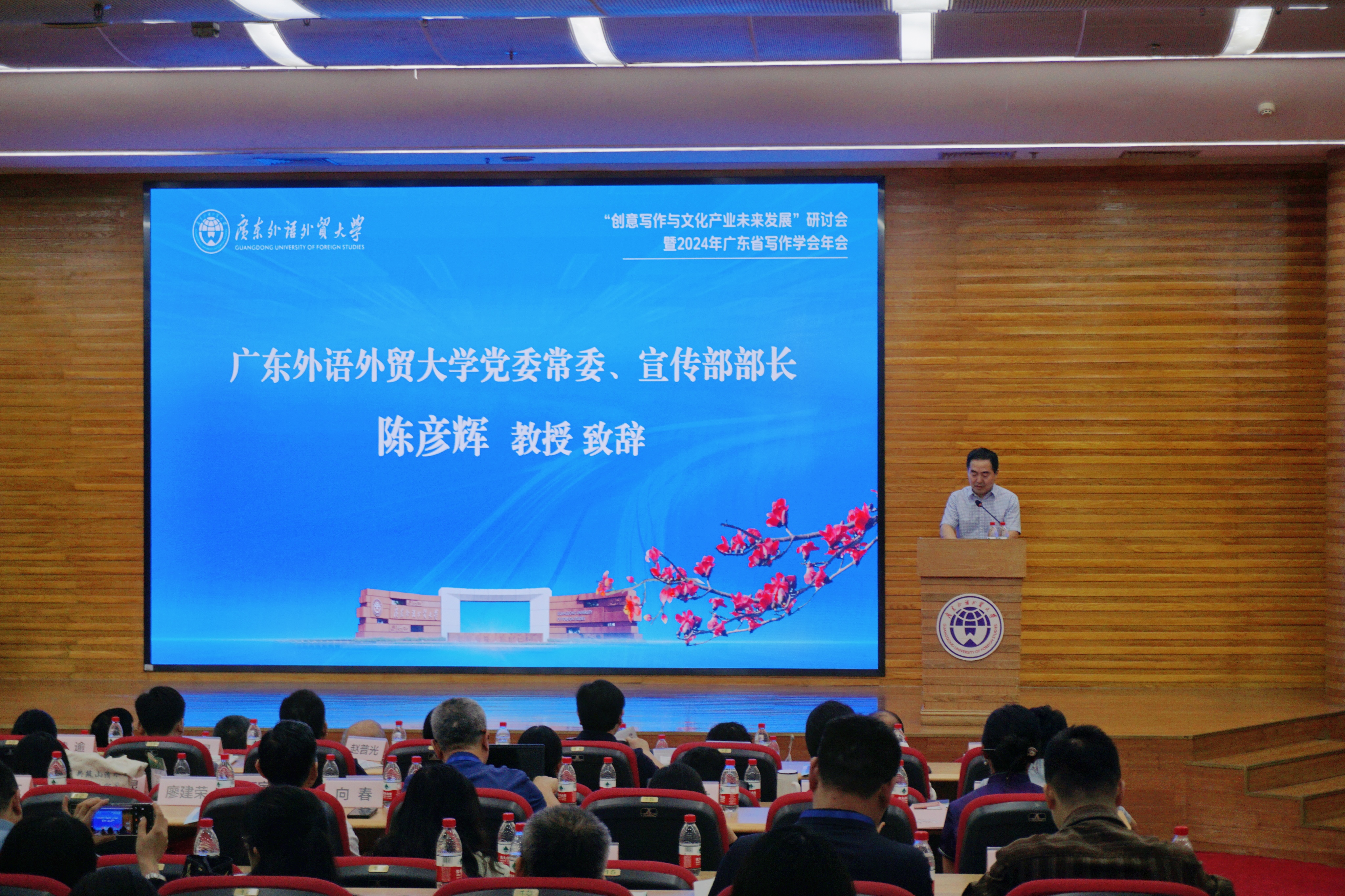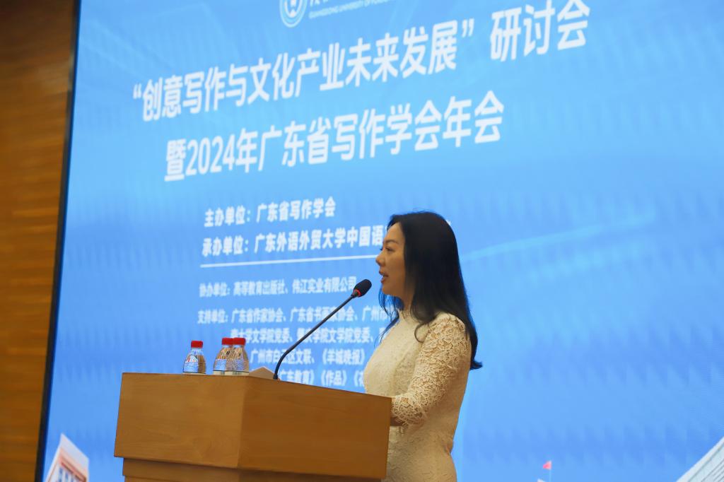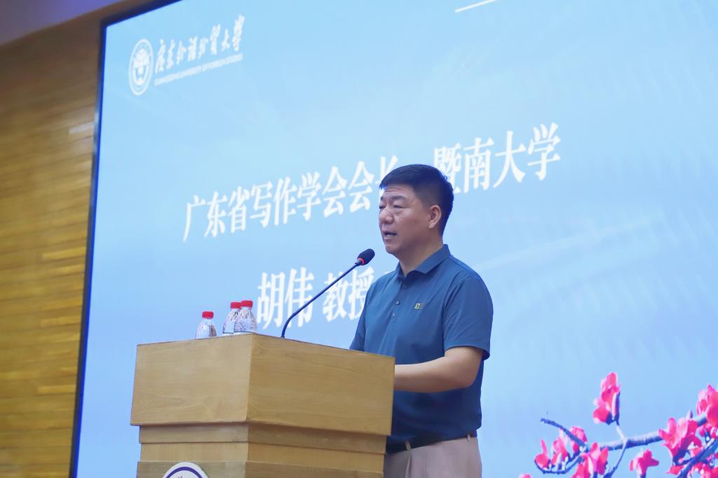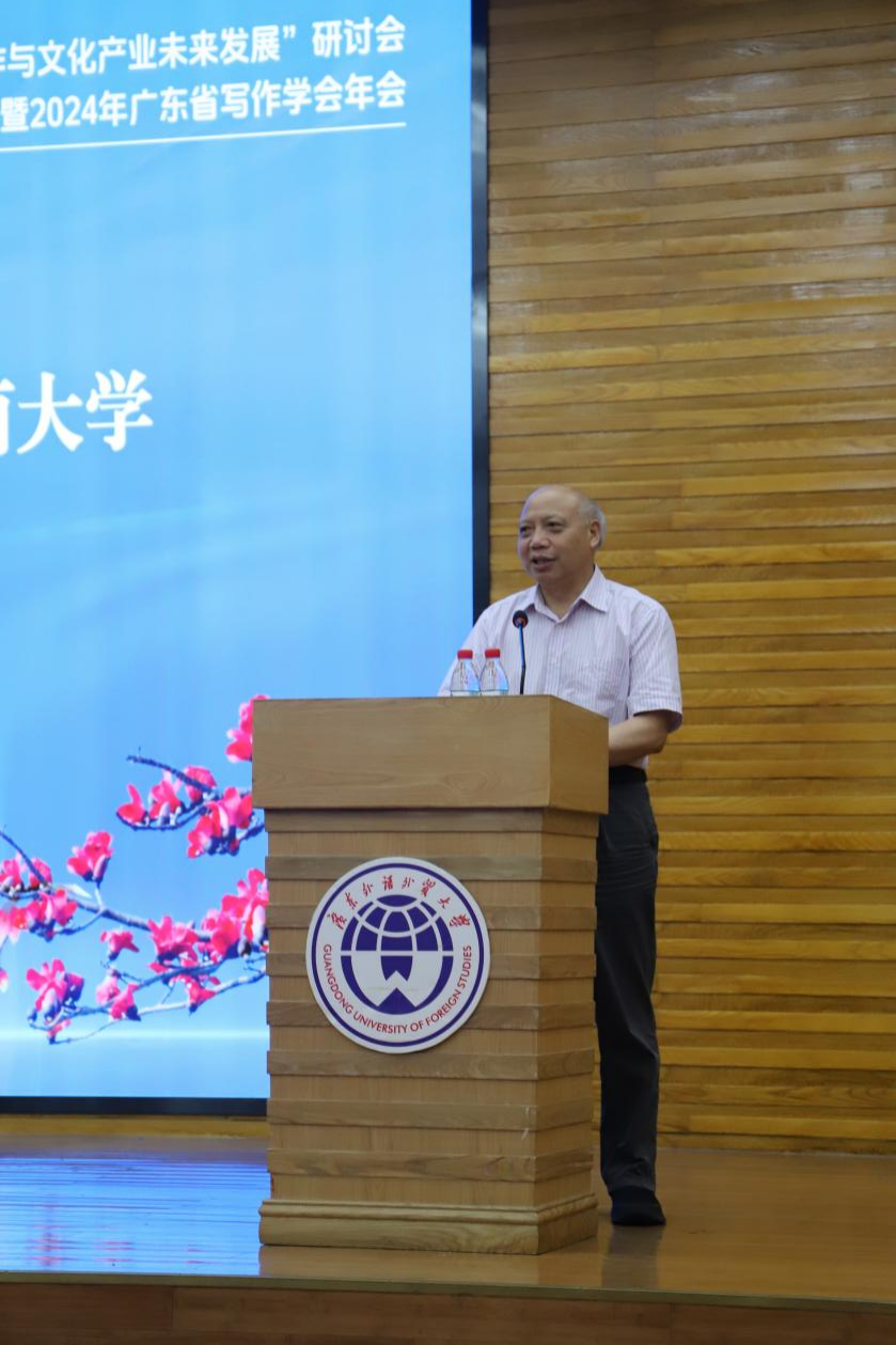 本网讯 5月25日,由广东省写作学会主办、广外伟德国际bevictor1946承办、高等教育出版社、伟江实业有限公司协办的“创意写作与文化产业的未来发展”研讨会暨广东省写作学会2024年年在公司会圆满举行。大会吸引了众多文学界和教育界的重量级嘉宾,广东省作家协会主席、暨南大学蒋述卓教授,华南农业大学副董事长、诗人蒋育燕教授,中国写作学会会长、武汉大学方长安教授,中国诗歌学会会长、中国作协主席团委员、著名诗人杨克,中山大学非物质文化遗产研究中心主任、《文化遗产》主编宋俊华教授,广东省作家协会文学部主任、一级作家魏微,《中国校园文学》主编徐峙,广州市作家协会副主席、《广州文艺》副社长、作家陈崇正,《花城》副主编杜小烨,《青年文学》编辑耿鸿飞,大赛冠名赞助商伟江实业公司董事长焦红江,以及广东省写作学会会员及省内60多所高校、中小学、社会团体的专家学者、教师、行业精英、新闻媒体代表300多人参与会议,广外党委常委、宣传部部长陈彦辉教授代表承办方出席本次会议。开幕式由广外中国语言文化公司党委书记谢秀兰主持。
