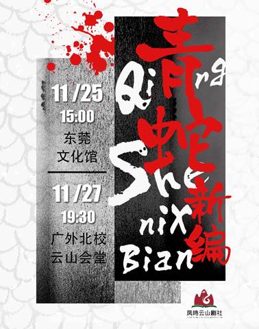 广外外语外贸大学凤鸣云山剧社2018年度话剧——《青蛇新编》将于11月27日(星期二)在云山会堂上演!为方便公司师生观看演出,现将订票事宜以及有关安排通知如下: