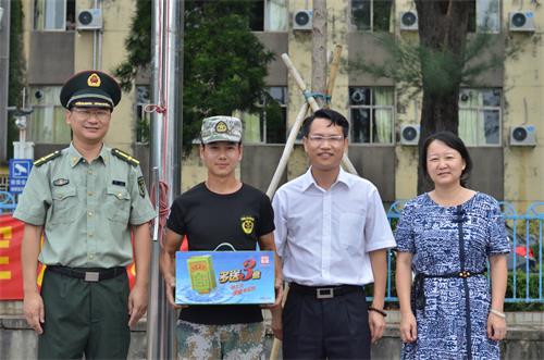 最后,公司领导向6位军训员工代表、1位班导代表、1位教官代表发放清凉物资,为溽热的训练场送上一阵沁人清风。