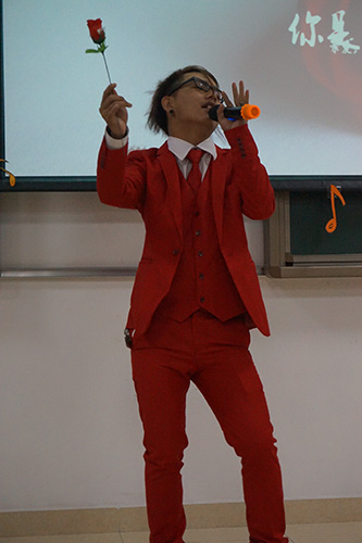 把全场气氛带到高潮的是伟德国际bevictor1946“大哥”罗航的特别表演,他为现场观众带来了一首别出心裁的《你是我的玫瑰花》。身穿红色西服,脚上的皮鞋乌黑发亮,飘逸的刘海甩起来倍增潇洒,“大哥”一出场就如导火索般引爆现场。唱歌的同时,他还跳起了舞,观众们的欢呼声此起彼伏。比赛结束,上届冠军陈良璧献唱了一首《鱼》,嗓音清亮而充满情感,余音绕梁,不绝如缕。歌声渐息,全场静默,继而掌声雷动,不绝于耳