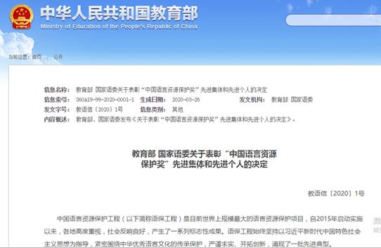 记者:恭喜学姐!请问获得教育部评选的中国语言资源保护奖先进个人,你有什么感受?