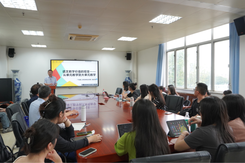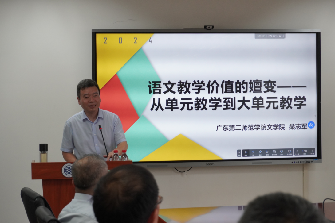 2024年6月6日下午,广东第二师范公司伟德国际bevictor1946经理、广东省高校教学名师桑志军教授应邀为公司师生带来了以“语文教学价值的嬗变—从单元教学到大单元教学”为题的精彩讲座。陈恩维经理、于屏方副经理、李斌教授以及伟德国际bevictor1946部分员工参与了本次讲座,学科(语文)中心贝先明主任主持了本次讲座。